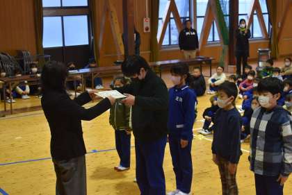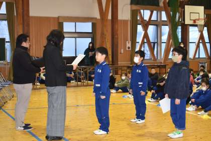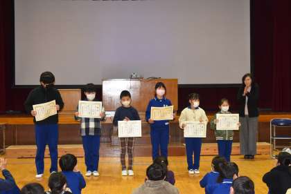 全校集会 表彰 公開日 2024/03/11 更新日 2024/03/11 学校の特色ある活動 3月11日(月)の全校集会では、今年最後のあすっこ賞の表彰をしました。元気なあいさつ、友達を思いやる優しさ、自分の考えを表現できることなど、今年もたくさんのあすっこの素晴らしいところを表彰することができました。それぞれのよさを発揮して、成長した一年です。 また、読書感想画コンクールで入選した子たちへの表彰の伝達も行いました。