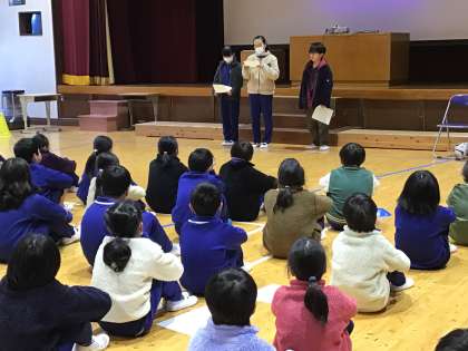 全校集会 出でよ あすっこヒーローズ 1 公開日 2024/03/11 更新日 2024/03/11 学校の特色ある活動 全校集会では、今日が半旗になっていることを説明し、13年前の東日本大震災のこと、当たり前のありがたさ、命の大切さを考える1日にしようとお話ししました。 全校集会に続いて、情報委員会の「出でよ あすっこヒーローズ」の発表もありました。 サッカー、縄跳び、プログラミングと、多彩な才能を見せてくれる子どもたちです。