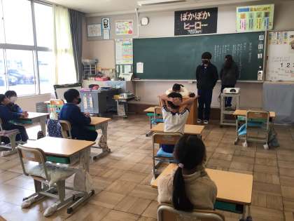 落部は、2年生教室です。「新班長さん、優しいよ」と言う声が聞こえてきました。