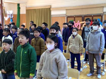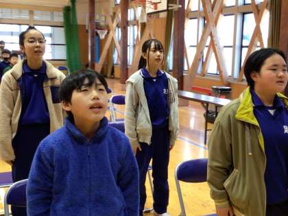 卒業式当日も、みんなで声を合わせて、講堂に国歌や校歌を響かせましょう。