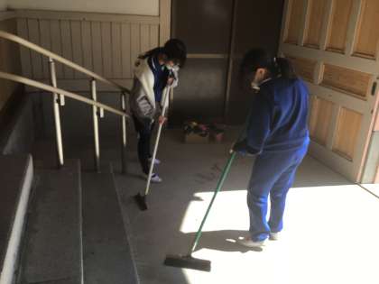 3月18日(月)、6年生が下校した後、4・5年生が卒業式の準備を始めました。