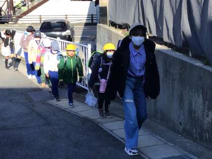 3月22日(金)、令和5年度最後の登校風景です。こちらも、新しい並び順で、新リーダーさんたちががんばっています。