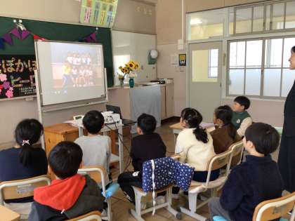 2年生は、思い出アルバムの上映中でした。