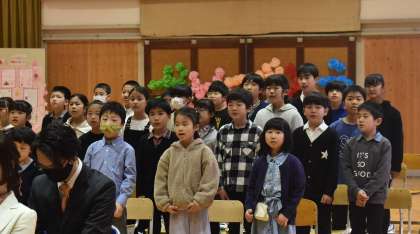 進級認定の2から6年生は、とても素晴らしい返事を講堂に響かせました。