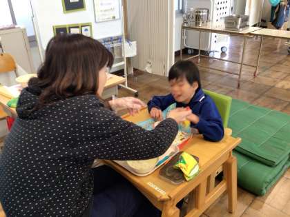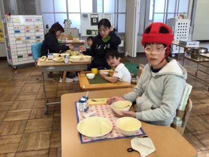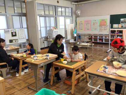 4月10日(水)、わくわく1・2組の給食の様子です。それぞれのペースでもりもり食べていました。