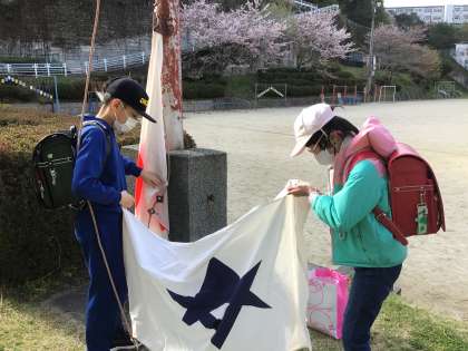 4月12日(金)、今朝も国旗と市旗が空を舞っています。まだ、令和6年度の委員会活動は始まっていませんが、引き続き取り組んでくれる子のおかげで、毎日、きちんと旗があがっています。ありがとうございます。