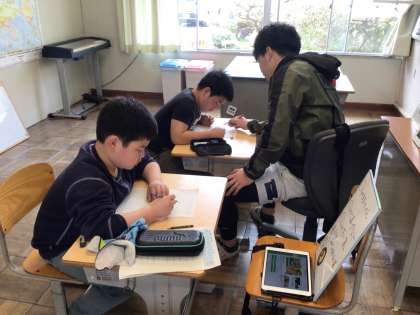 4月15日(月)、100マス計算に取り組んでいます。隣の進み方を少し気にしながら、それぞれがんばっていました。