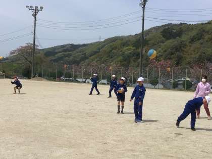 3・4年生 体育 投げる 公開日 2024/04/15 更新日 2024/04/15 各学年から 4月15日(月)、3・4年生の体育は、ドッジボールを使ってのキャッチボールです。片手で上から投げること、相手のボールをうまくキャッチすることを目指して頑張っていました。