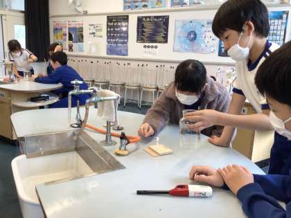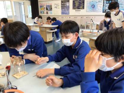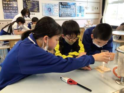 6年生 理科 ものの燃え方 公開日 2024/04/16 更新日 2024/04/16 各学年から 4月16日(火)、6年生は理科の実験をしています。ものが燃えるときの空気の流れの観察です。見えない空気を見る方法は、と尋ねられると「線香」と言う言葉が出てきました。線香の流れを必死で観察する子どもたちです。