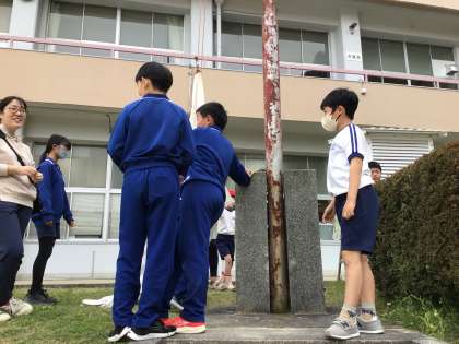 体育委員会は、早速旗の揚げ方を学んでいました。みんなが元気になるように、どんどん働きかけてください。