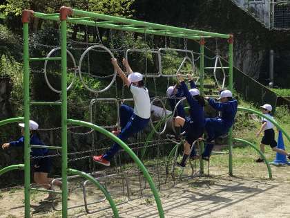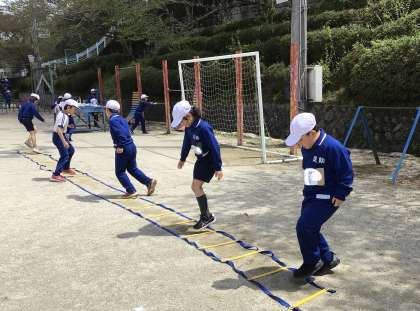 4月17日(水)、3・4年生の体育もサーキットからスタートです。スピード感ある動きで、どんどん進んでいきます。鉄棒では、前回り下りより難しい技に取り組んでいました。