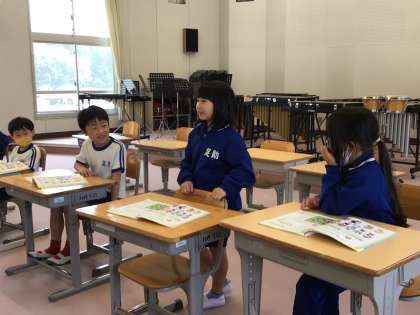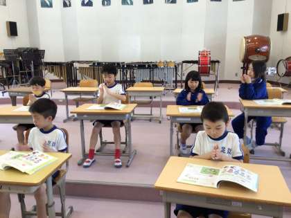 2年生 音楽 こいぬのビンゴ 公開日 2024/04/17 更新日 2024/04/17 各学年から 4月17日(水)、2年生の音楽は世界の歌、「こいぬのビンゴ」を歌っていました。途中で手拍子が入るのですが、歌っているうちに手拍子の秘密に気づいた子もいました。秘密がわかって2回目は、手拍子をぴったり合わせて歌うことができました。