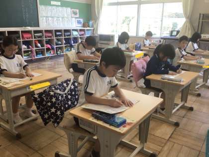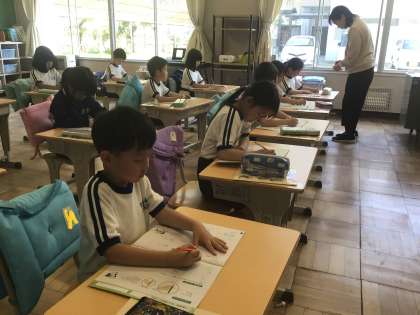 2年生 書写 いい姿勢 公開日 2024/04/19 更新日 2024/04/19 各学年から 4月19日(金)、2年生の書写の学習の様子です。字を書くときの姿勢や鉛筆の持ち方を動画や教科書をしっかり見て書き始めました。 とてもいい姿勢で、思わず写真を撮りました。この姿勢で書いたら、とてもいい字が書けそうです。