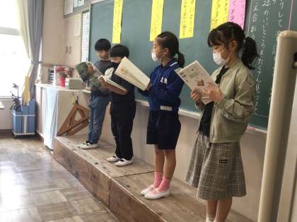 3年生も国語でグループごとに音読をしました。一人一人が自分の目標をしっかりと意識し、表現豊かに読んでいました。