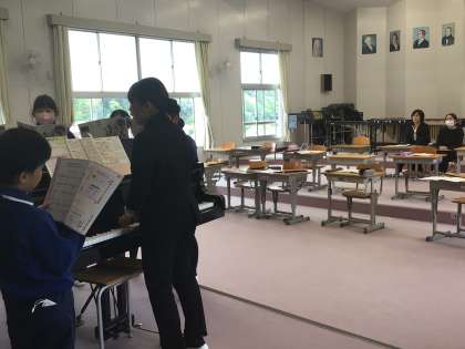 授業参観 4年生 公開日 2024/04/20 更新日 2024/04/20 学校行事 4年生は音楽です。歌をどんなふうに表現するかを、ピアノやフォルテの記号を使って考え、実際にピアノ伴奏に合わせて歌ってみました。