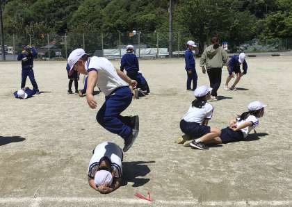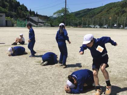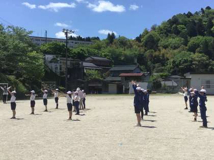 4月25日(木)、3・4年生の体育のスタートはラジオ体操と体力作りの運動です。