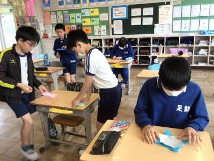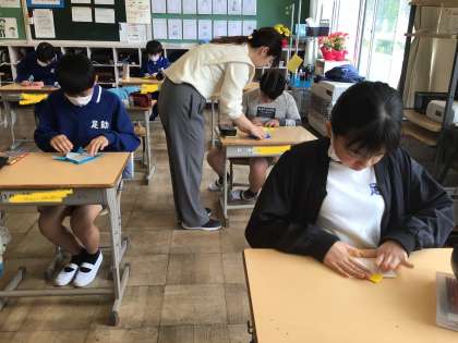 6年生 1年生へのプレゼント 公開日 2024/04/26 更新日 2024/04/26 各学年から 4月26日(金)、6年生は1年生へのプレゼントを作っていました。「難しい」とつぶやきながら、それでも一生懸命きれいに作る、優しい6年生です。