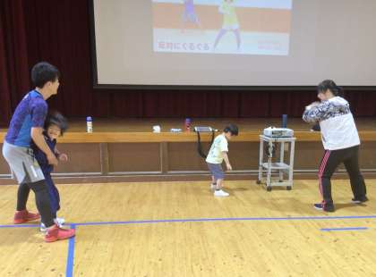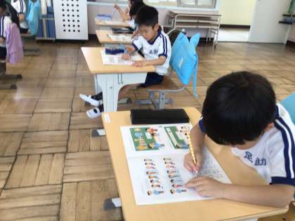 4月26日(金)、1年生が卒業したこども園などの先生方が学校に来て、1年生の様子を見てくださいました。先生たちが現れると、目を丸くして大喜びの子どもたちでした。