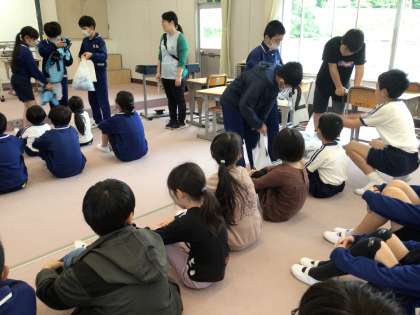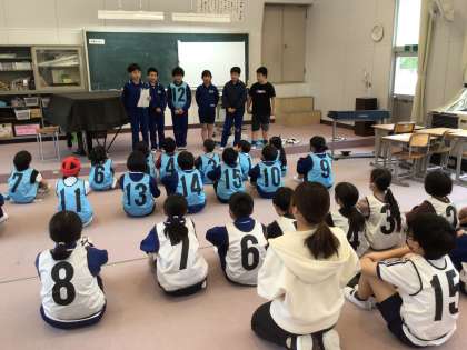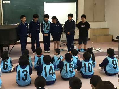 赤白結団式 白団 公開日 2024/04/30 更新日 2024/04/30 学校行事 白団もビブスを配って、団長、副団長が団への気持ちを話しました。 団長さん、副団長さん、みんなをしっかりと引っ張ってください。みんなが力いっぱいがんばる運動会にしましょう。