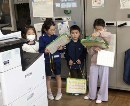 2年生はいろいろな部屋のことを説明しました。校長室は、「お客さんが来る部屋です」と話していました。