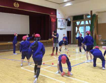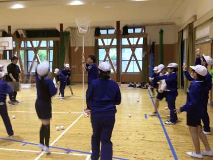 5月1日(水)、5・6年生は全校競遊の玉入れを講堂で行っていました。さすが、たくさん入ります。