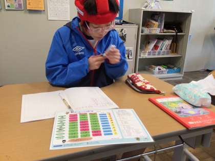 5月1日(水)、わくわく学級の算数です。互いに答えを確かめ合いながら、進めていきます。