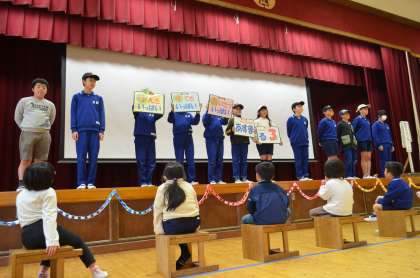 1年生を迎える会、大成功! 公開日 2024/05/02 更新日 2024/05/02 学校行事 1年生を迎える会が開かれました。4年生が会場の飾りつけ、5年生が〇×クイズとゲーム、6年生があすまる3劇をしてくれました。全校児童で盛り上がった温かい会になりました。