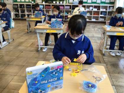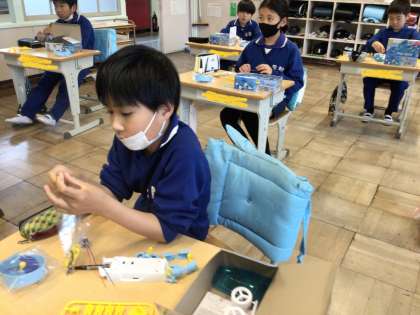 5月2日(火)、4年生は電池を使った実験器具を作成中です。完成したら、電気の実験が始まります。
