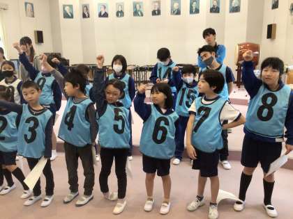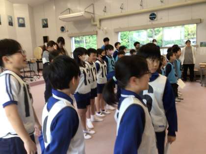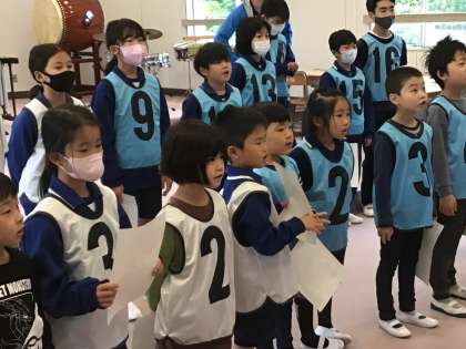 応援合戦練習 白組 公開日 2024/05/09 更新日 2024/05/09 特別活動 5月9日(木)、今日は白組が音楽室です。かけ声練習が始まりました。6年生の話をしっかり聞こうとする1〜4年生です。