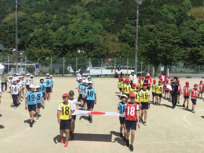続けて、開会式の練習をしました。行進して入場します。