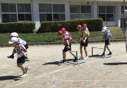 運動会 障害物リレー 2 公開日 2024/05/14 更新日 2024/05/14 学校行事 4 フラフープを外して、ジャンプしてお菓子を取ります。今日はタッチにしましたが、本番はお菓子の袋が並びます。 5 フラフープを次の人に渡します。 今日は、6年生が1年生のお家の方になってリレーをしました。にこにこの1年生です。