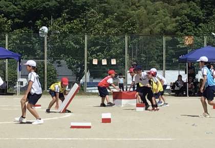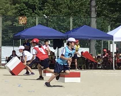 次々と箱をひっくり返す子どもたち。赤の勝利でした。