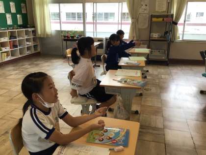 3年生外国語活動 ALTの先生と 公開日 2024/05/21 更新日 2024/05/21 各学年から 5月21日(火)、ALTの先生と感情を表す言葉を学習しました。hungry、happyなどを動作や表情もつけて表現します。どんな感情かわかりますか?