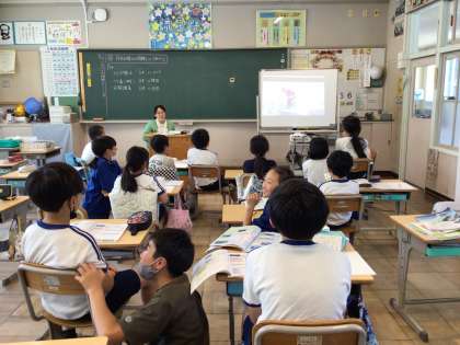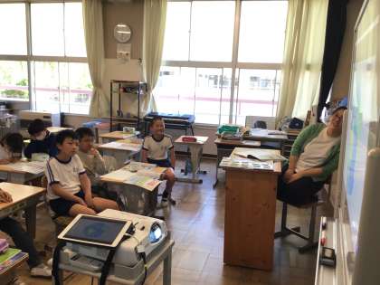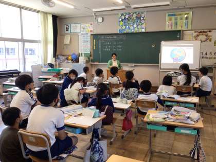 5月21日(火)、5年生は社会で地球儀を通して様々な国の様子を学習していました。