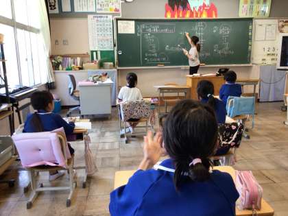 5月21日(火)、4年生はわり算の筆算の学習です。最後に先生が出題した難しい問題にも、、一人一人が真剣に考えて、自分なりの答えを導き出そうとしているいる姿が印象的でした。