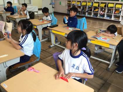 1年生 図工 はさみを使って 公開日 2024/05/23 更新日 2024/05/23 各学年から 5月23日(木)、はさみを使って、折り紙からいろいろな形を切り出していた1年生。折って切った紙を開くと、不思議な形が現れて、大笑い。たくさん切ることができました。