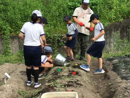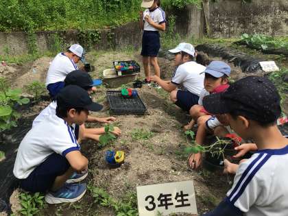 3年生 理科 苗植え 公開日 2024/05/23 更新日 2024/05/23 各学年から 5月23日(木)、3年生は理科の学習で育てていた苗を畑に植えました。ひょろっと伸びた苗もあるけど、畑でぐんぐん育つといいですね。