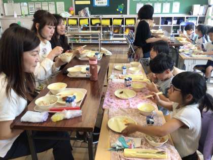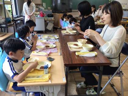 1年生 給食指導と試食会 4 公開日 2024/05/30 更新日 2024/05/30 各学年から いよいよ給食です。お家の方と一緒に、おいしく食べました。 みんなのために、多くの人が一生懸命作っている給食です。毎日、おいしく食べてくださいね。