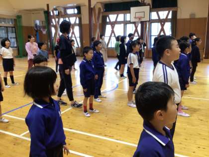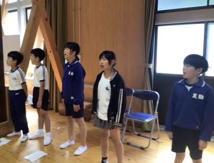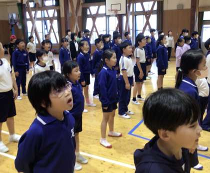 朝会の最後は、「小さな世界」の合唱です。いい声が講堂に響きました。