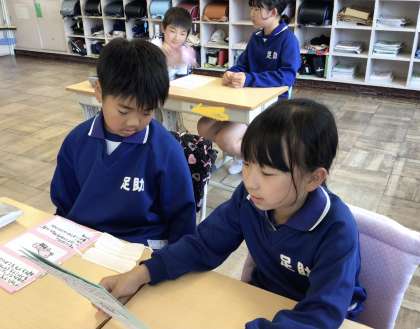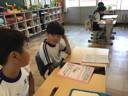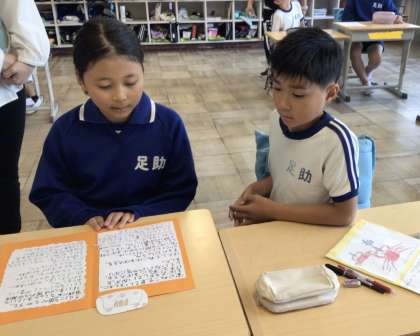 6月3日(月)、4年生は完成したリーフレットを友達同士で見せて、説明していました。とても丁寧にしっかり調べて書いてあります。読み応えのある、いいリーフレットができました。