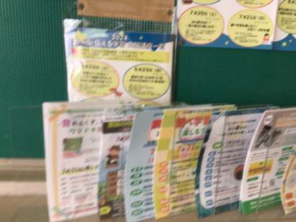 図書のコーナー 公開日 2024/06/05 更新日 2024/06/05 校長室から 司書さんが、図書室前に中央図書館で開かれる講座をお知らせするコーナーを作ってくださいました。興味があるものがあったら、チラシを持っていってくださいね。