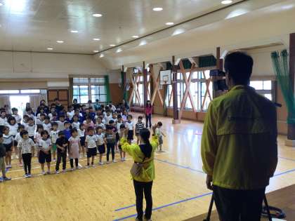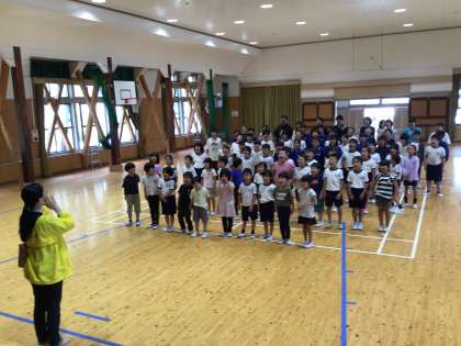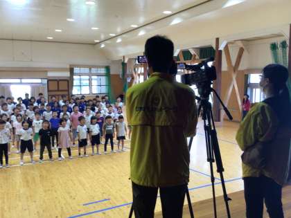 給食後には、タイトルコールや校歌を全員で撮影しました。