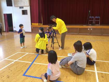 ひまわりネットワーク撮影「ぼくらの学び舎」 4 公開日 2024/06/06 更新日 2024/06/06 校長室から 全員撮影の後は、「いまドキーワード」の撮影です。今、夢中になっていることを紹介しました。
