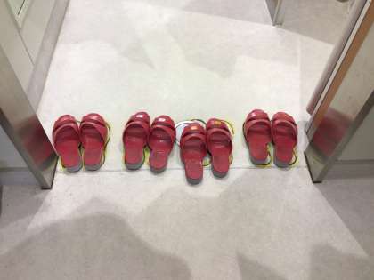 きれいだとうれしいですね 公開日 2024/06/07 更新日 2024/06/07 校長室から 6月7日(金)、授業中のトイレのスリッパです。次の人が使いやすいように、きれいに並べてあります。「トイレのスリッパ、そろえたよ」と1年生の子が教えてくれました。思いやりの気持ちがみんなに広がるとうれしいですね。