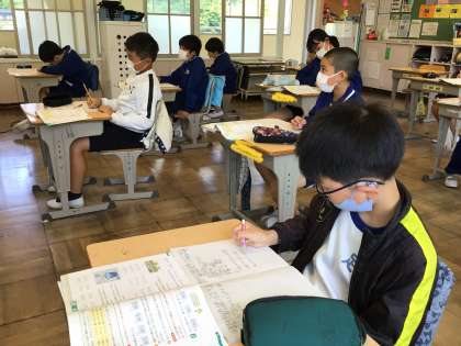 6年生 挙手するときは 公開日 2024/06/10 更新日 2024/06/10 各学年から 6月10日(月)、算数の問題を解き、挙手する6年生です。でも、いつもとは違う光景です。 足助小学校では、授業中は黙って挙手することにしました。授業に集中してほしいからです。今までは「はい」または「はいはい」の声が聞こえていましたが、この写真では声は聞こえていません。