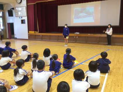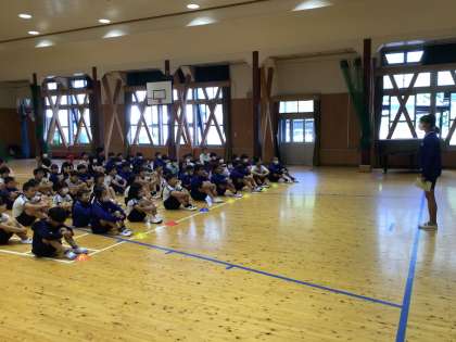 全校スピーチ集会 1 公開日 2024/06/10 更新日 2024/06/10 学校の特色ある活動 6月10日(月)、今年初めての全校スピーチ集会でした。今日は、各グループで選出されたスピーチマスターの中の一人が運動会をテーマにスピーチを行いました。