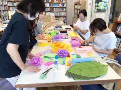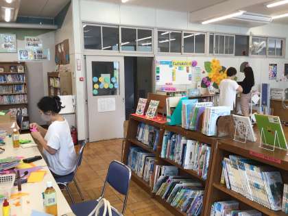 図書室 飾りつけボランティア 1 公開日 2024/06/11 更新日 2024/06/11 各学年から 6月11日(火)、図書室の飾りつけボランティアの方に来ていただき、図書室を夏の装いにしていただきました。いろいろなアイデアをどんどん出して、午前中の間に、とても素敵な図書室になりました。 お忙しい中。本当にありがとうございました。秋の飾りつけも予定しています。みなさんの起こしをお待ちしています。