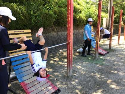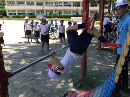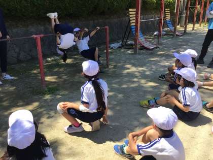 1・2年生 体育 逆上がり 公開日 2024/06/12 更新日 2024/06/12 各学年から 6月12日(水)、1・2年生の体育では、逆上がりの練習が始まりました。くるんと回る感覚は、とても新鮮らしく「どうなったのかわかんない」とつぶやきながら、補助器具も使って逆上がりの感覚をつかもうとしています。