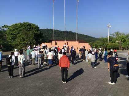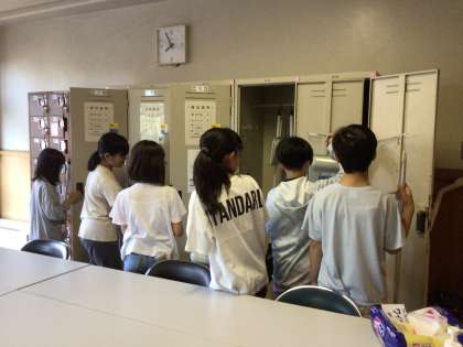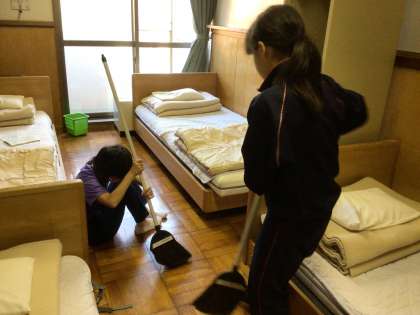 キャンプ2日目 朝のつどい 清掃活動 5年生