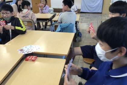 グループで、トランプのババ抜きをして楽しんでいたのは、ボードゲームクラブです。ババが動くたびに、大騒ぎです。